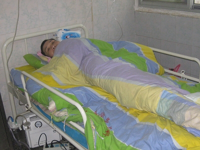 我是魏運沅,男,38歲,家住江西省上猶縣寺下鎮龍潭村上寨村民小組,家有2人,一個5歲男孩,父親早年去世,妻子離異,母親在2013年12月31日突發心臟病在縣中醫院去世。在我辦理母親喪事的時候,因身體勞累家里又沒錢,加上我之前有癲癇病,2014年元月5日晚上住我堂哥家,次日凌晨2點左右起來小便,癲癇病又發作,從二樓摔下一樓,及時由寺下鎮衛生院救護車送至上猶縣人民醫院,經CT檢查診斷為頸椎6、7節骨折,胸部以下癱瘓。當天上午10時送至贛州市人民醫院,CT確診為頸椎6、7節骨折,治療期間進行了兩次手術。因臥床時間長,肺部已被感染,出現呼吸困難,元月31日醫師經過病人家人同意被迫切開氣管進行吸痰,2月9日病情好轉轉回到上猶縣人民醫院繼續治療,現在已花費醫療費用15萬元以上,現胸部以下還是癱瘓,生活不能自理。按照2014年上猶縣新型農村合作醫療住院補償政策意外傷每人每年最高只準報6000元。余下14萬多元我自己難于承受,加之沒有固定工作,又有癲癇病,治療這些費用是親戚幫助借來的錢。小孩也沒人撫養,已經面臨絕境。